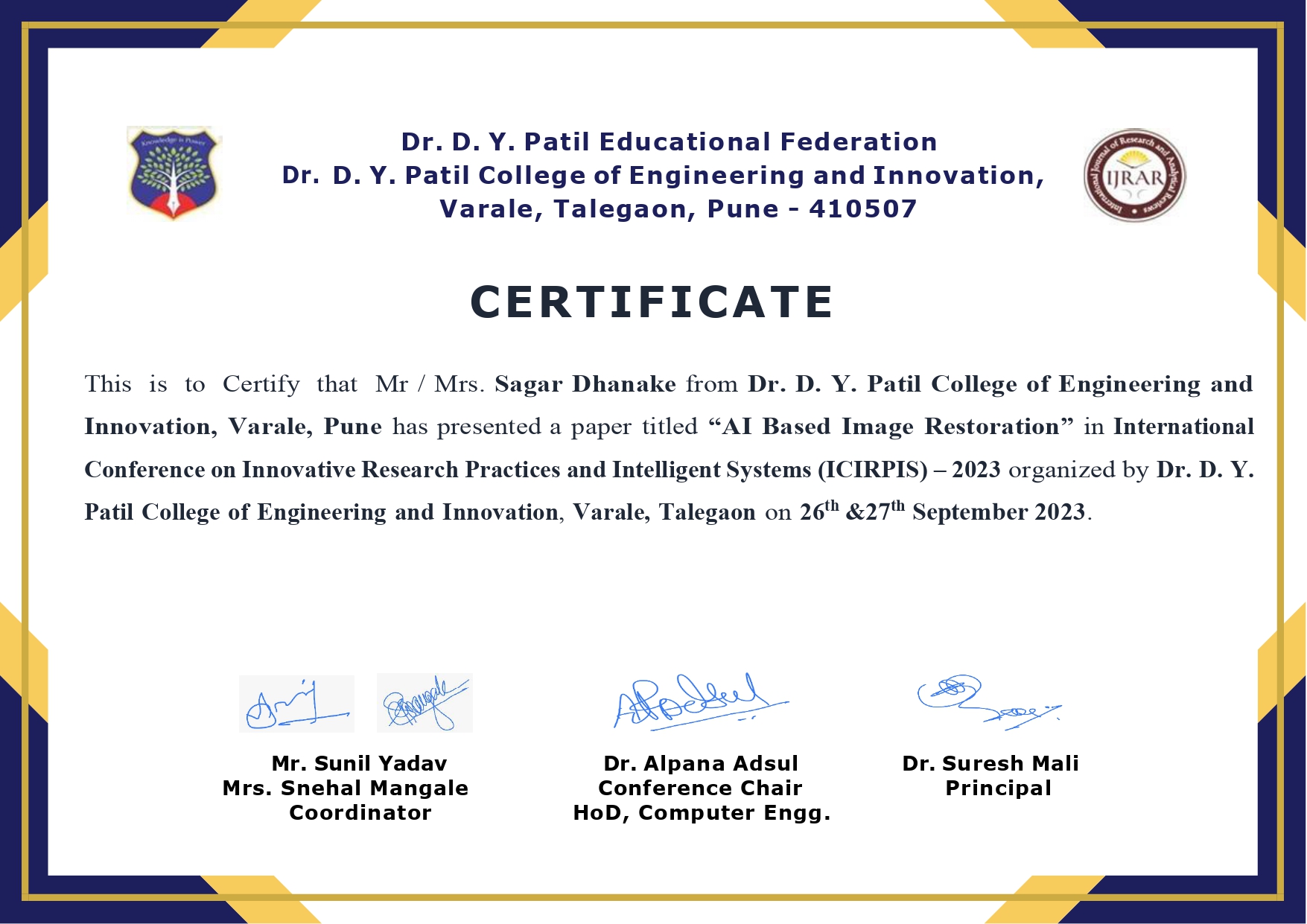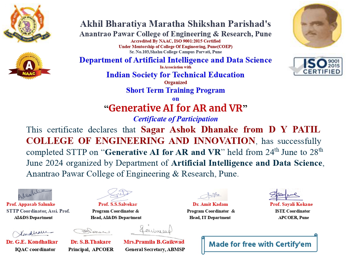 Institute: Dr. D. Y. Patil Institute of Engineering & Technology, Ambi